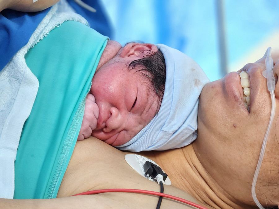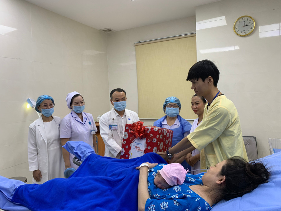 Ngay sau đó một phút, lúc 00h01 phút, một bé trai nặng 3.400g cũng cất tiếng khóc chào đời khỏe mạnh.
