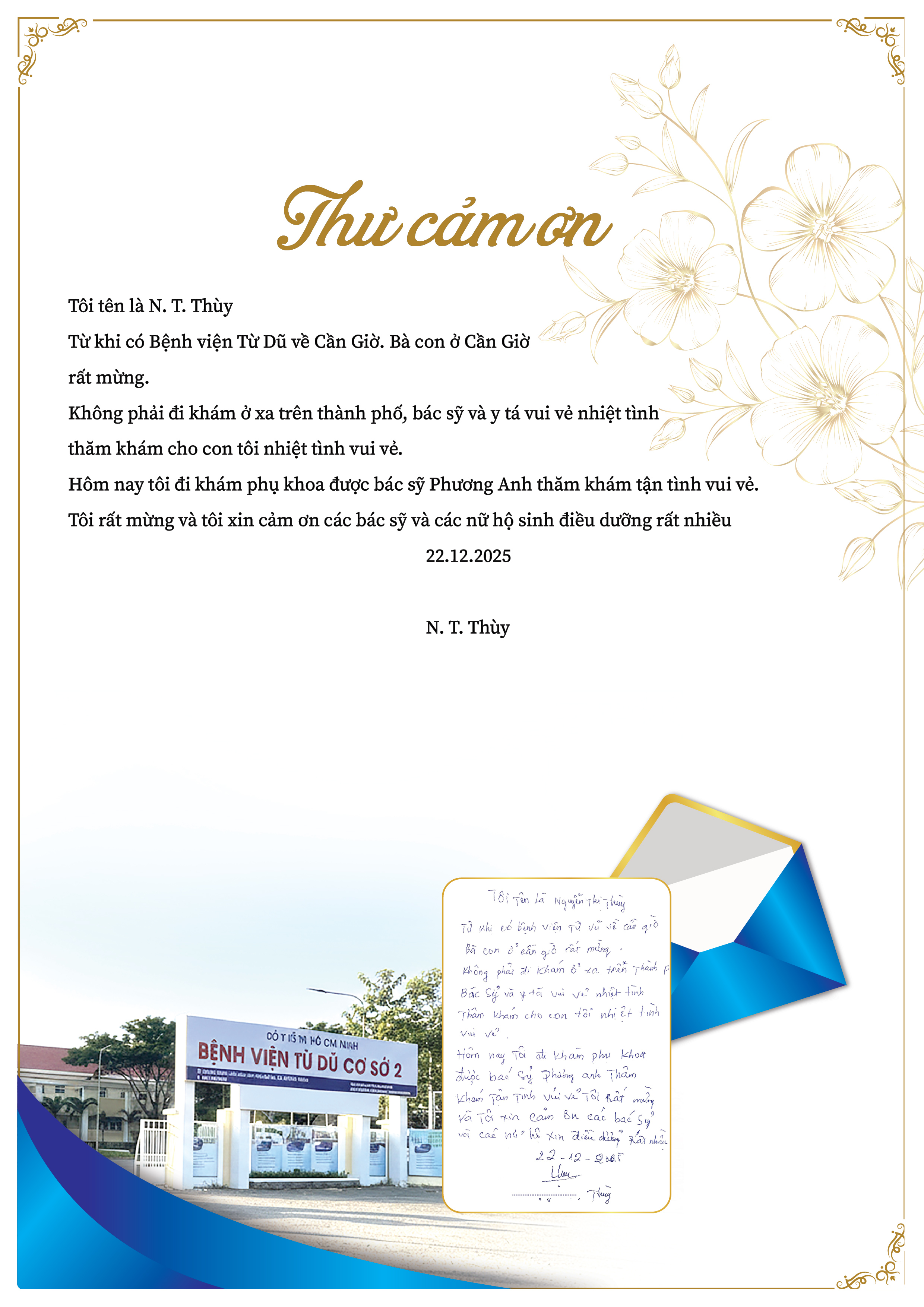 Thư cảm ơn N.T. Thùy - BV Từ Dũ cơ sở 2