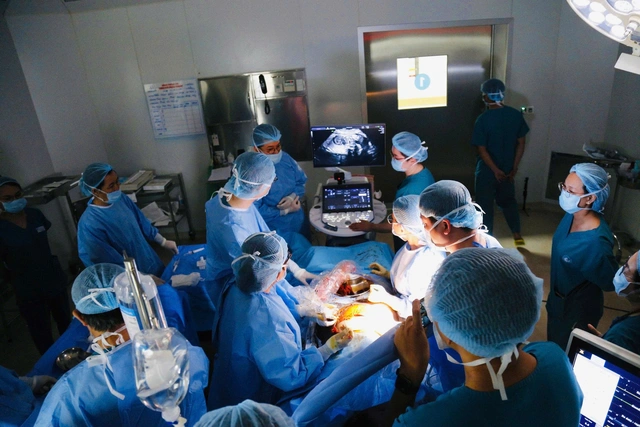 Sau khi được hội chẩn liên viện, các bác sĩ thống nhất phải can thiệp bào thai khẩn cấp để cứu thai nhi.