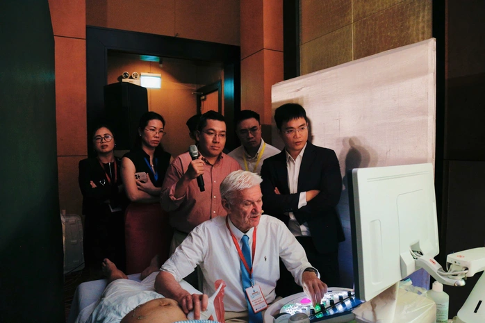 Tại hội thảo, GS Simon Meagher đã siêu âm thị phạm hướng dẫn các bác sĩ tham dự hội thảo