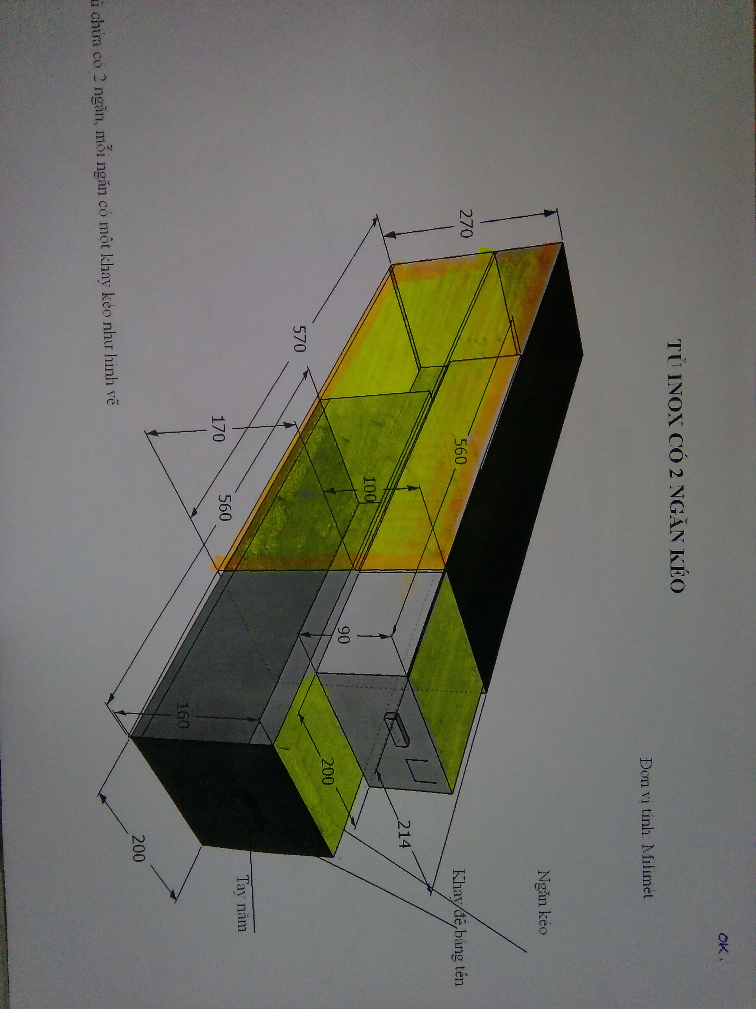 b./ Ngăn kéo: Có 2 ngăn, được làm bằng tấm Inox 304, dày 1 mm, mặt trên để trống.