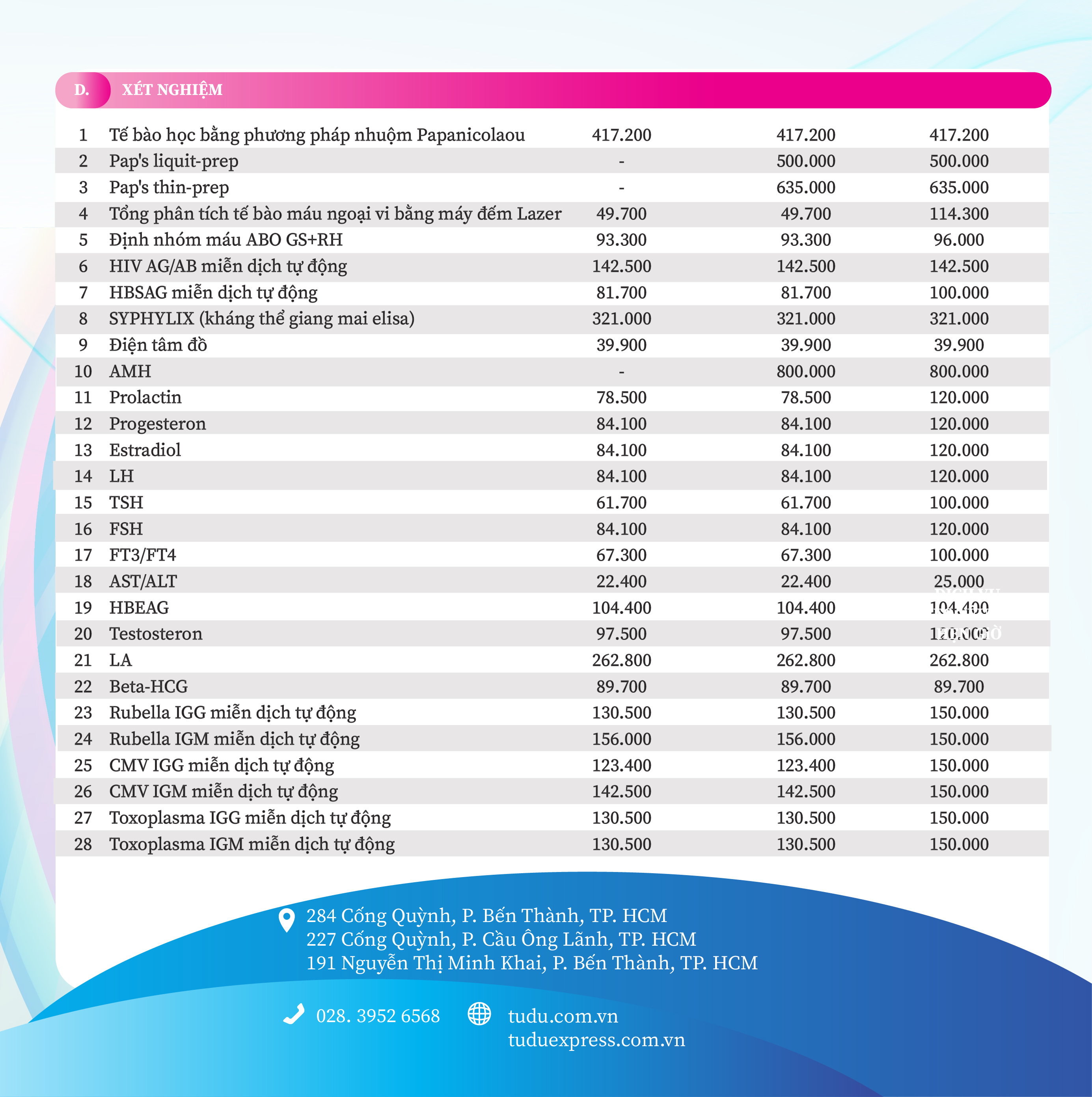 Bảng giá áp dụng tại phòng khám thai (siêu âm, xét nghiệm, khám bệnh, CMV, HIV, Glucose đường huyết, nhóm máu, điện tâm đồ, Rubella...)