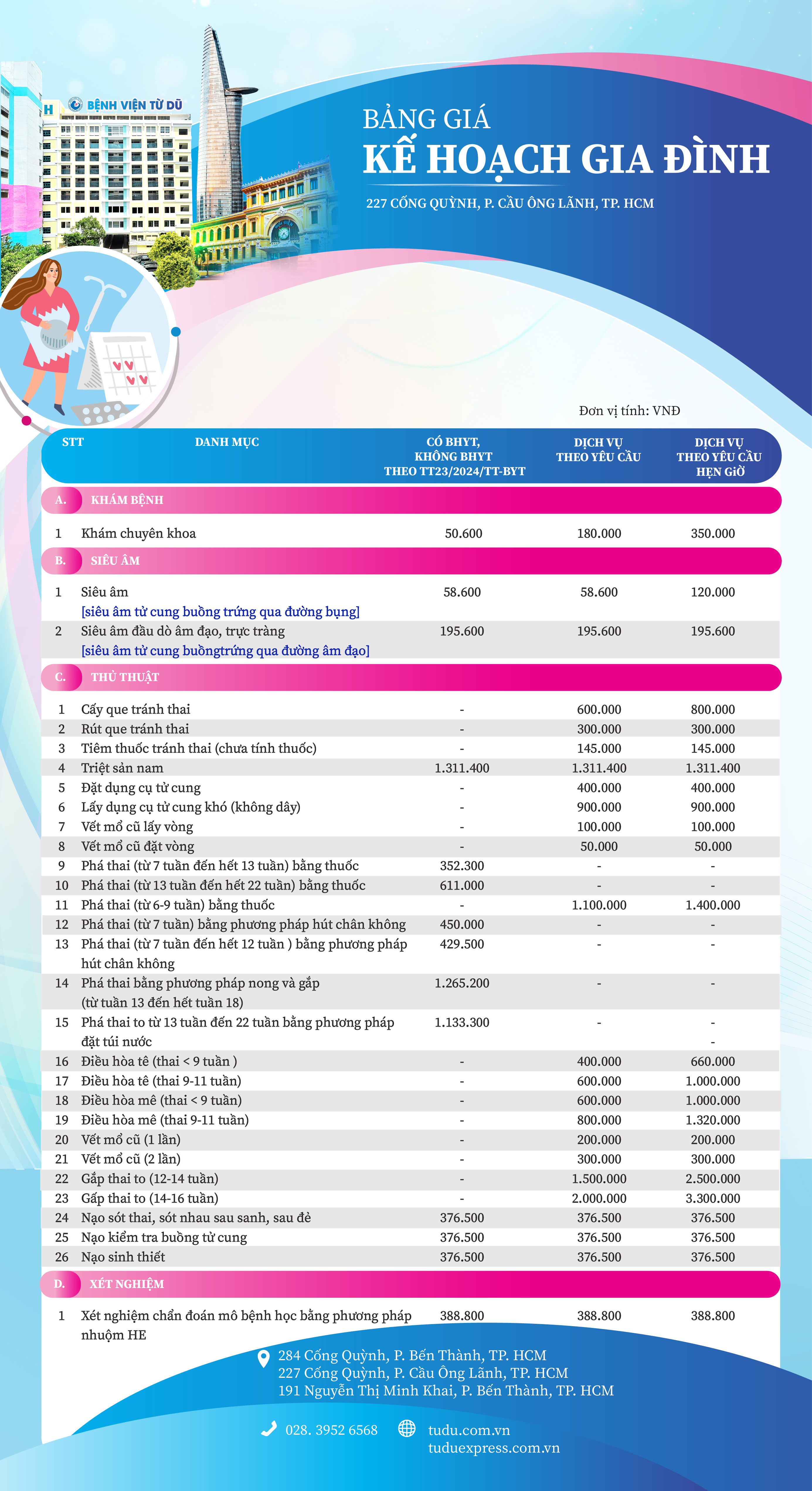 Bảng giá dịch vụ kỹ thuật Kế hoạch hóa gia đình