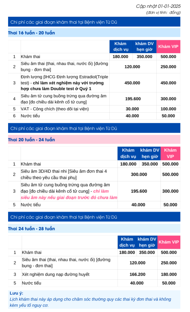 >>👉 Chi phí khám thai 3 tháng giữa (khám thường): bấm vào đây