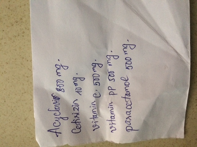 Em chào Bác sỹ. Em là Tâm, cuối tháng 28/1/2018 em có bị thủy đậu và có ra tiệm thuốc tây mua thuốc tay uống và bôi, tuy nhiên em không biết mình có thai, đến ngày 17/3/2018 em đi khám thì bác sỹ báo em có thai 8 tuần, khám và siêu âm thai đều bình thường. Có nghĩa là thời điểm em bị thủy đậu và uống thuốc em đã có thai vì vậy không biết có ảnh hưởng gì không ạ, em rất lo lắng, em đã ra tiệm thuốc tây và xin lại tên thuốc đã uống, mong các bác sỹ xem giúp tên thuốc có anh hưởng gì không ạ. em gởi hình file đính kèm ạ. em chân thành cảm ơn.