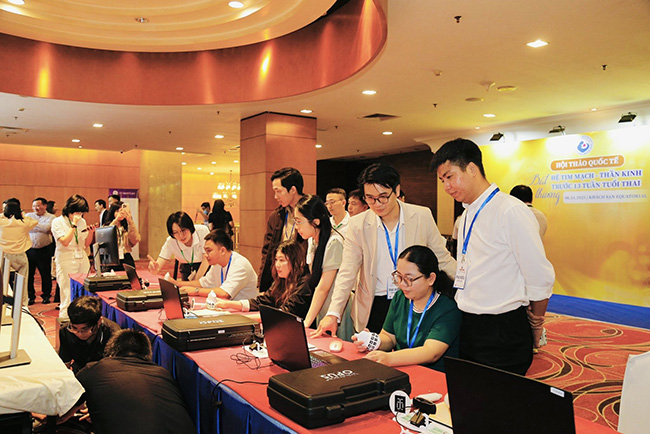 Không khí hội nghị trở nên sôi nổi trong phần thực hành siêu âm trực tiếp và thảo luận chuyên môn mở rộng, nơi các bác sĩ Việt Nam được trao đổi trực tiếp với các chuyên gia quốc tế về những ca bệnh thực tế, kỹ thuật đo đạc và nhận diện sớm các bất thường bào thai.