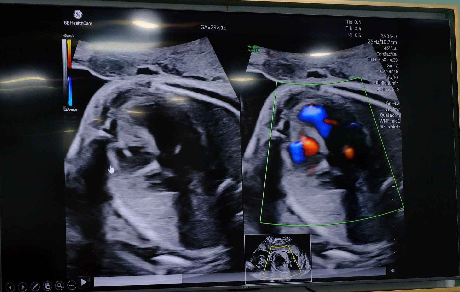 Tuy nhiên, đến tuần thai 22 - 24, qua siêu âm tim thai chuyên sâu, các bác sĩ ở một bệnh viện tư phát hiện thai bị bất thường tim bẩm sinh, chẩn đoán hẹp van động mạch phổi nặng kèm hở van ba lá. Nơi này đã chuyển chị đến theo dõi, hội chẩn chuyên sâu tại Bệnh viện Từ Dũ và Bệnh viện Nhi Đồng 1.