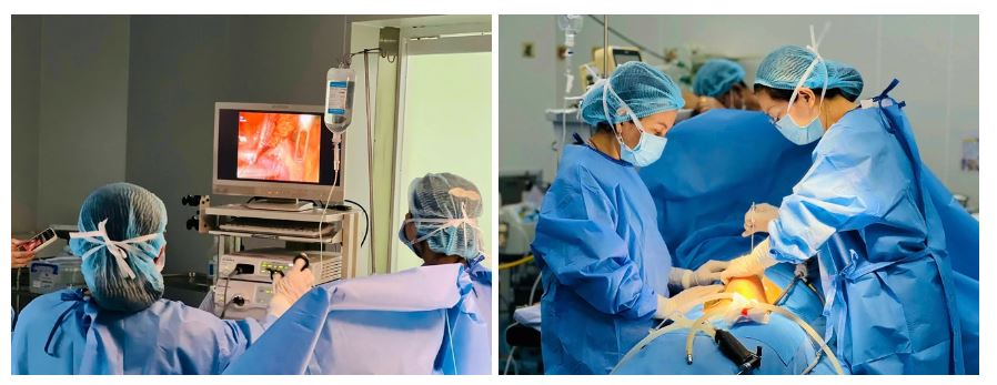 Bệnh nhân nhanh chóng được chuyển lên phòng mổ, ê kíp chuẩn bị đầy đủ dụng cụ và trang thiết bị. Ca phẫu thuật kéo dài hơn một giờ. Khoảng 8 tiếng sau mổ, bệnh nhân tỉnh táo, hết đau bụng và có thể ăn uống nhẹ.