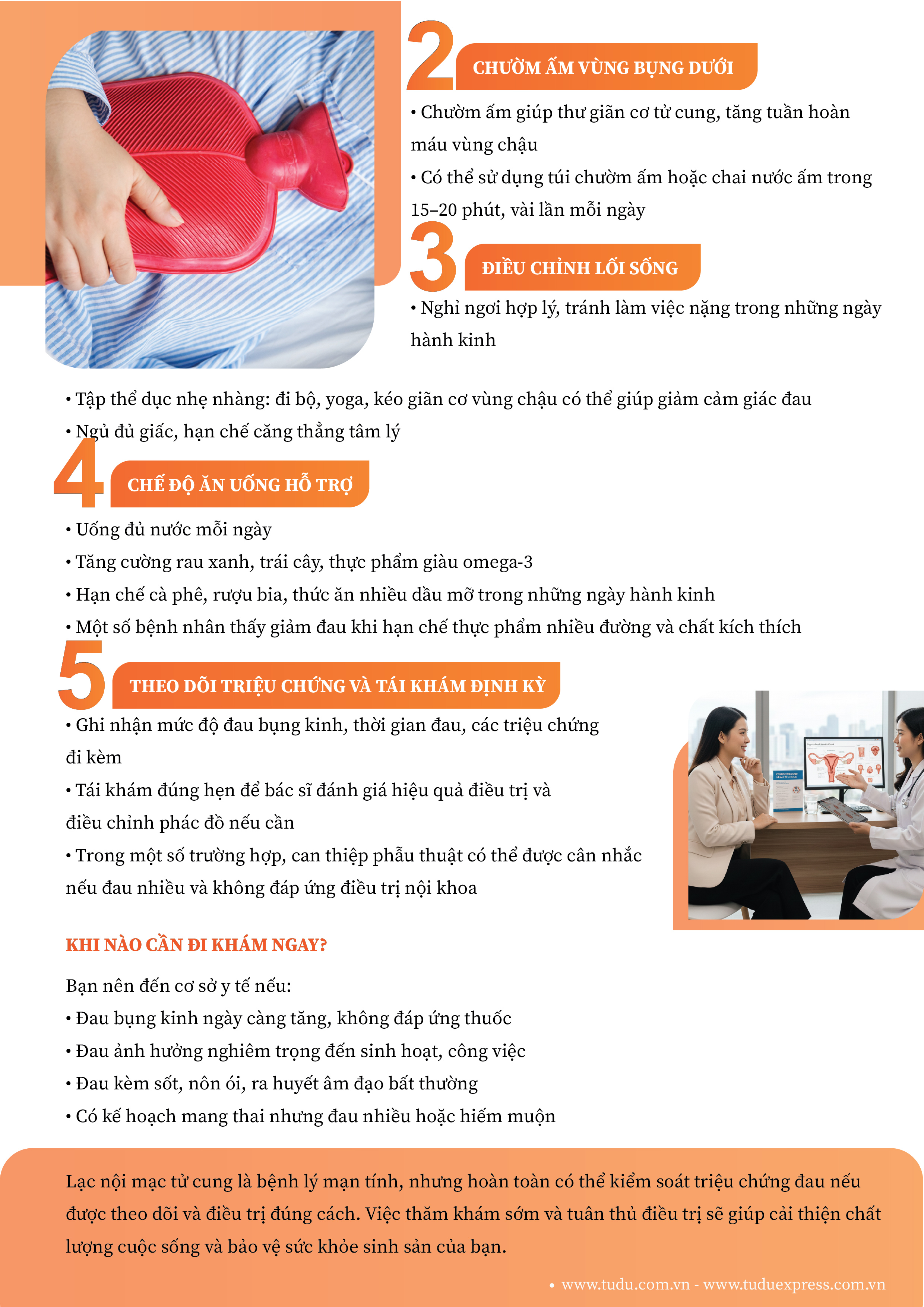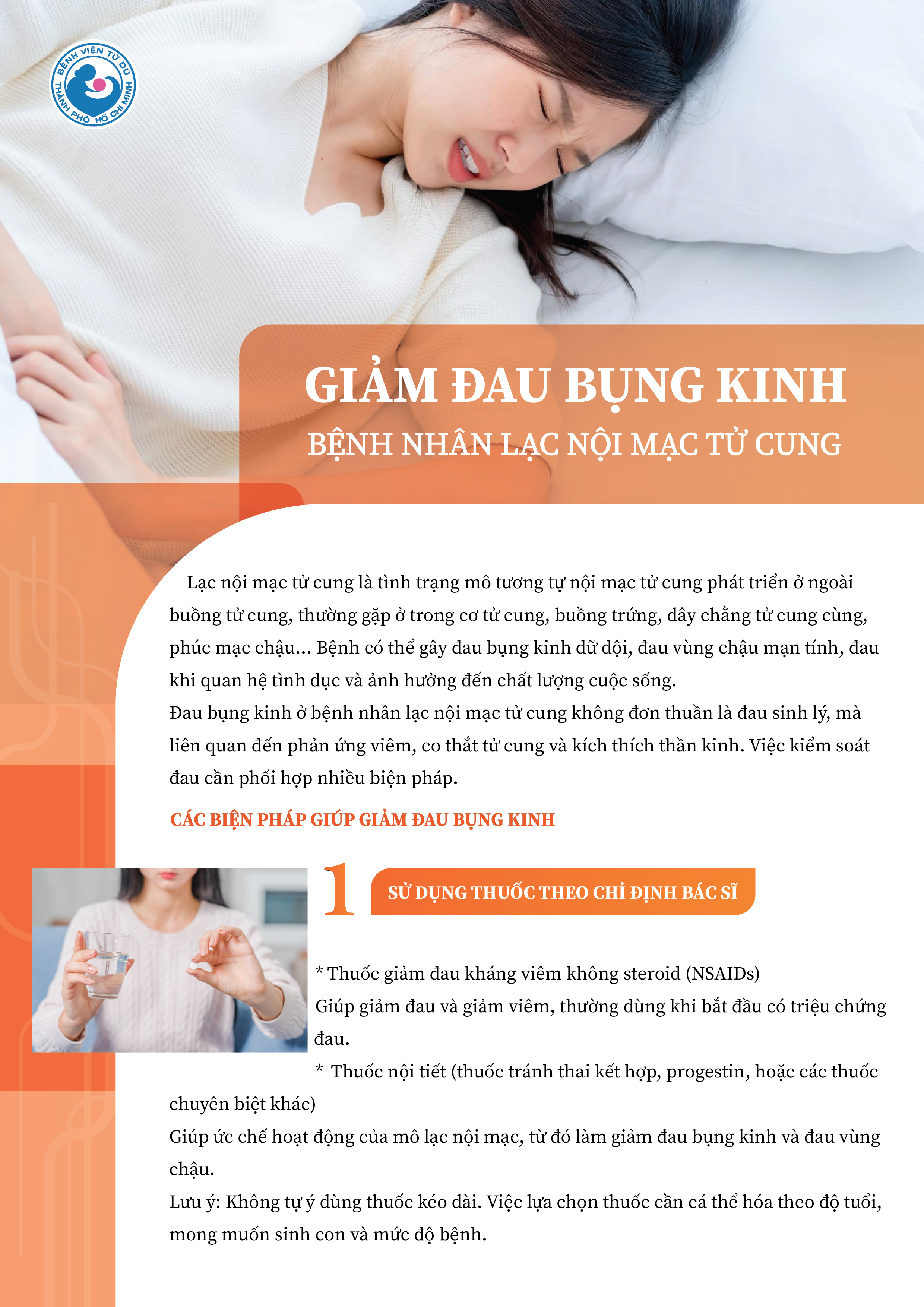 Đau bụng kinh ở bệnh nhân lạc nội mạc tử cung không đơn thuần là đau sinh lý, mà liên quan đến phản ứng viêm, co thắt tử cung và kích thích thần kinh. Việc kiểm soát đau cần phối hợp nhiều biện pháp.