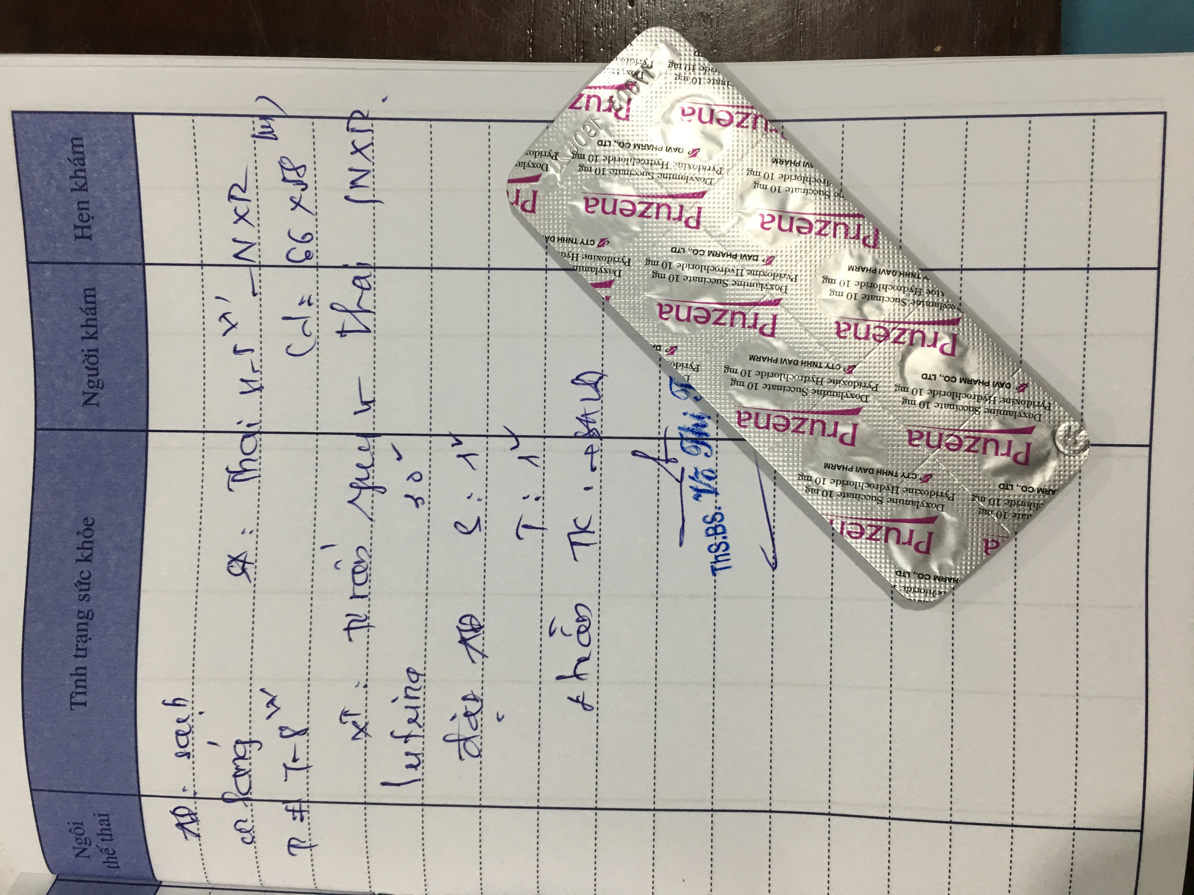 Chào Bác sĩ, Em đi khám hôm thứ 3 tuần này, bs kết luận có 1 túi thai trong tử cung, và bên cạnh đó cũng có nhân xơ khoảng 6mm. Bs có cho e uống sắt và thuốc pruzena để đặt âm đạo buổi sáng và tối. Em nghiên cứu trên mạng thì thấy pruzena là thuốc uống chống nôn trong thai kỳ. Như vậy không biết đặt trong âm đạo có ảnh hưởng gì không vậy ạ? Nhờ bác tư vấn giúp em. ( vì em khám gần nhà không phải bs bên Bv Từ Dũ ạ)