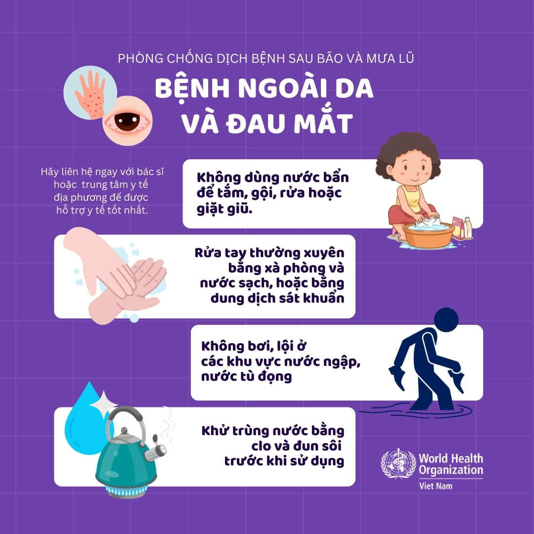 Sau mưa bão và lũ lụt, nguy cơ mắc các bệnh ngoài da và mắt có thể xảy ra.