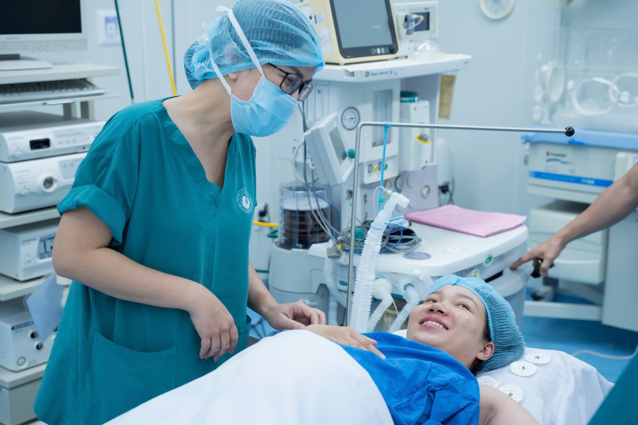 Sáng ngày 2/12/2025, quá trình theo dõi khởi phát chuyển dạ thất bại, chị được chỉ định mổ lấy thai để đảm bảo an toàn cho mẹ và bé. Chị được chuyển lên phòng mổ ngày sau đó, bên trong phòng mổ, các bác sĩ và nhân viên y tế sẵn sàng làm nhiệm vụ: gây tê ngoài màng cứng, chăm sóc sơ sinh, hồi sức cấp cứu… Sau khoảng 20 phút, bé trai nặng 2,7kg, chào đời khỏe mạnh, hồng hào trong niềm vui mừng và hạnh phúc của gia đình và các y bác sĩ.
