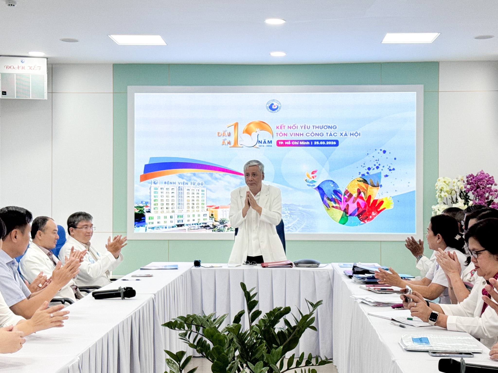 Sáng ngày 25/3/2026, tại hội trường khu D, Bệnh viện Từ Dũ đã tổ chức chương trình chào mừng Ngày Công tác xã hội Việt Nam, đồng thời kỷ niệm 10 năm thành lập Phòng Công tác xã hội. Sự kiện diễn ra trong không khí trang trọng, ấm áp với sự tham dự của Ban Giám đốc bệnh viện, lãnh đạo các khoa phòng, đại diện các đơn vị phối hợp cùng nhiều mạnh thường quân.