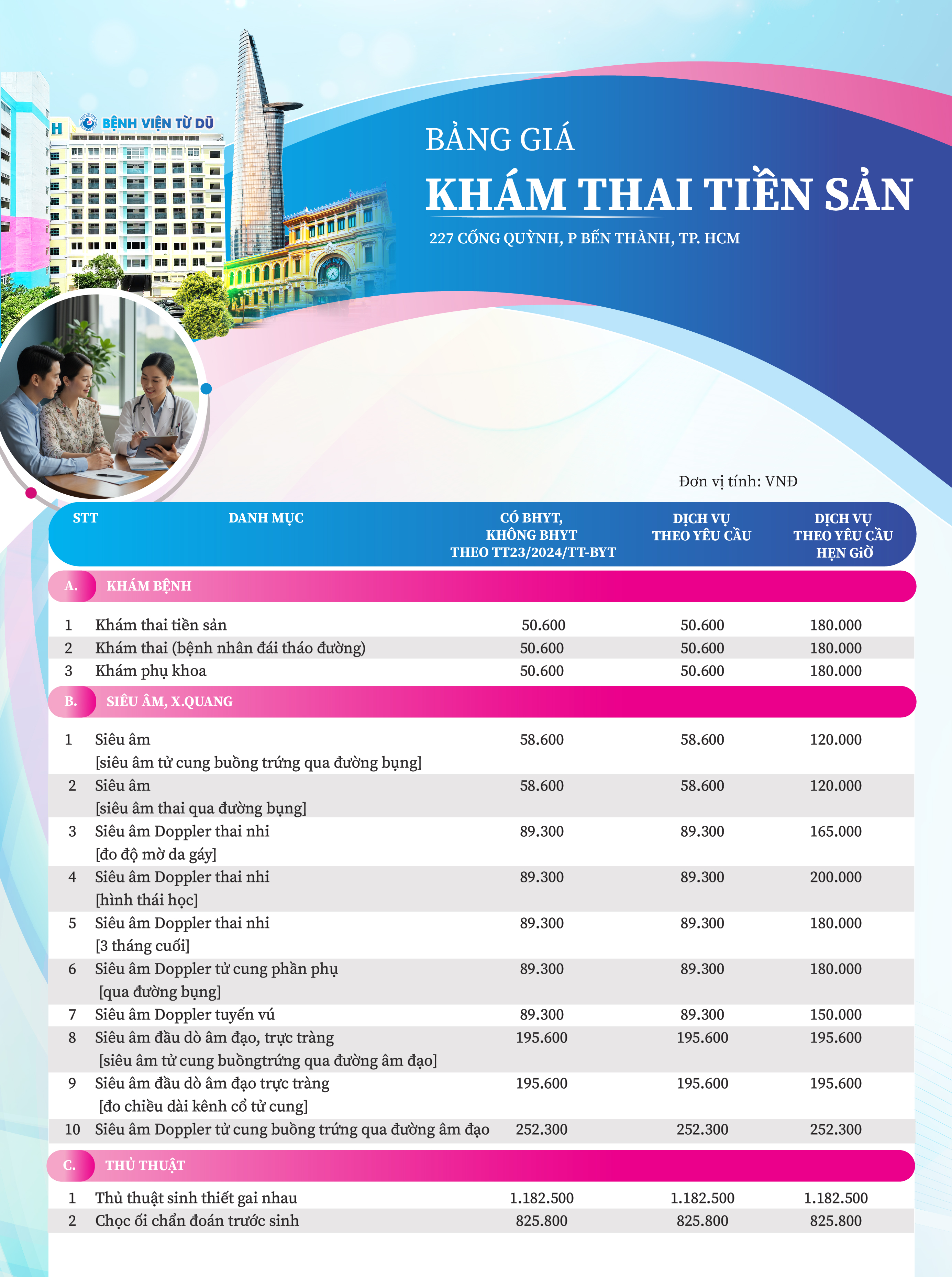 Bảng giá dịch vụ Kỹ thuật khám thai tiền sản