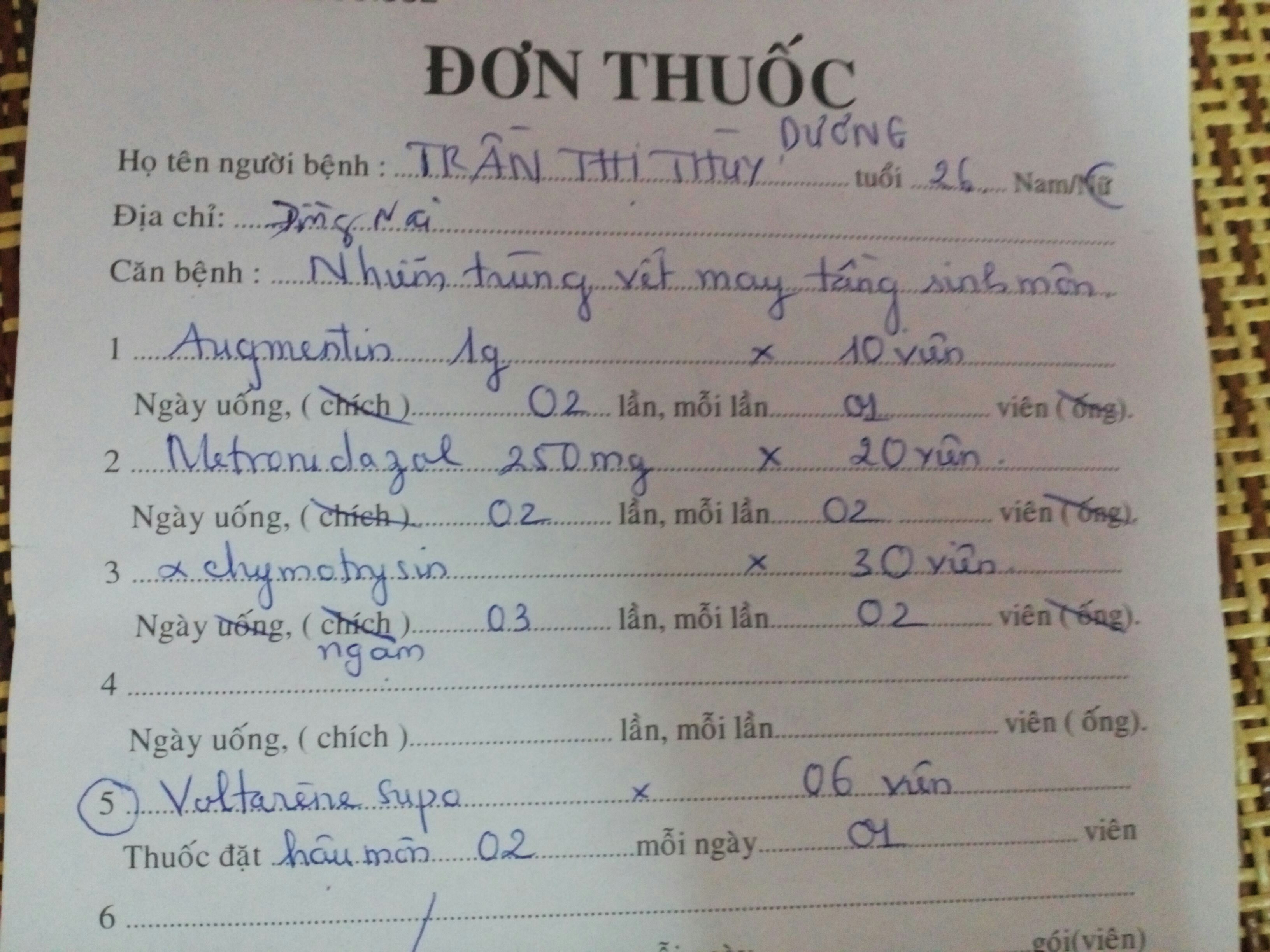 Trong đơn thuốc, chị được kê 4 loại: Augmentin 1 g (hoạt chất là Amoxicilin + acid clavulanic), Alphachymotripsin, Metronidazol và Voltaren đặt ( Hoạt chất là Diclofenac). Augmentin và Alphachymotripsin được xem là an toàn cho trẻ bú mẹ. Còn theo thông tin kê toa sản phẩm, Metronidazol qua sữa mẹ. Tuy nhiên, theo các tài liệu chuyên ngành, thuốc này vẫn có thể chỉ định trên phụ nữ cho con bú nếu thực hiện tốt biện pháp giảm nguy cơ ở trẻ do tiếp xúc với thuốc qua nguồn sữa. Chị nên tránh cho con bú trong khoảng 2-3 giờ sau khi uống thuốc Metronidazol, là thời điểm thuốc đạt nồng độ cao nhất trong sữa mẹ.