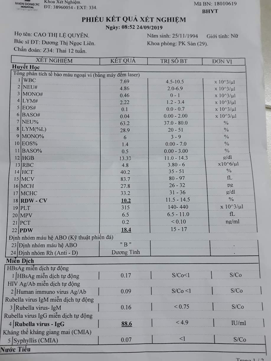 Thưa Bác Sĩ, em tên là Quí ngày 24.09.2019 em có chỡ vợ em đi khám thai tuần thứ 13 tại Bệnh Viện Quân Y 115 thì được kết quả xét nghiệm Rubella như sau: IgM : 0,16 <0,75 S/Co IgG : 88,6 <4,9 IU/ml Trước khi mang thai vợ e chưa từng chích ngừa Rubella và sau khi có kết quả xét nghiệm, Bác sĩ cũng không nói bất kì điều gì với vợ chồng em. Nhưng khi em lên mạng tìm hiểu thì kết quả trên cho thấy vợ em đã bị Rubella phải không a, giờ vợ chồng em rất lo lắng vì mang thai 3 tháng đầu mà bị bệnh này thì rất nguy hiểm cho thai nhi. Bác sĩ tư vấn cho vợ chồng em với.