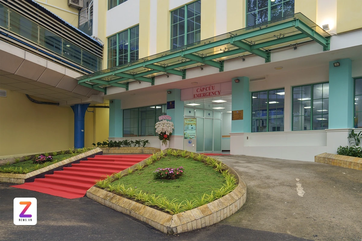 Tại khuôn viên bệnh viện, không gian tiểu cảnh 50 m² vừa được cải tạo, tạo điểm nhấn. Những mảng xanh được bố trí xen kẽ trước toà nhà, lối đi thuận tiện cho xe cấp cứu. Khu vực được thiết kế tách biệt, giúp tiếp nhận người bệnh nhanh chóng, an toàn và đảm bảo quy trình khép kín.