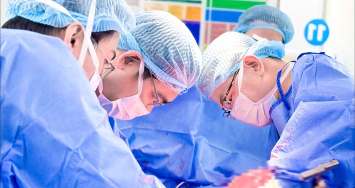 Đáng chú ý, khối u có hệ thống mạch máu tăng sinh phức tạp, nhưng ê kíp đã linh hoạt áp dụng kỹ thuật khâu cầm máu mũi chữ nhật, giúp kiểm soát tốt chảy máu trên diện rộng, hạn chế tối đa mất máu trong lúc mổ.