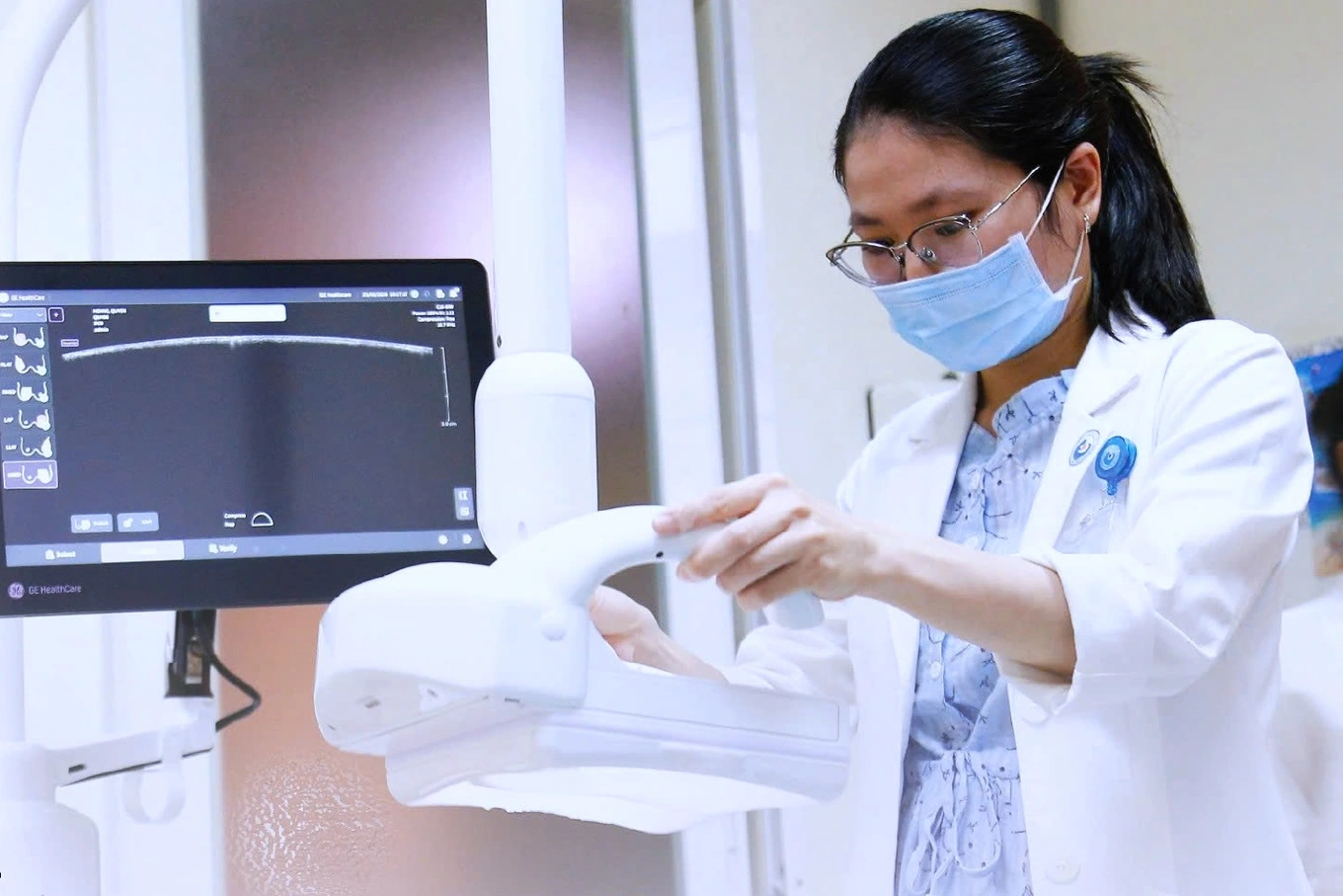 Bác sĩ thao tác hệ thống siêu âm vú 3D (Ảnh: BV).